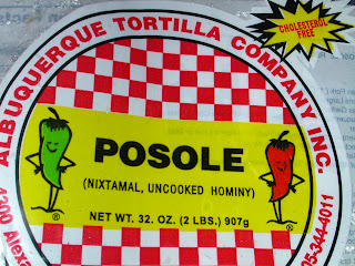 I had some fresh posole that a friend had brought back to me from New Mexico. So posole it was that starred in our Sunday night dinner this week.